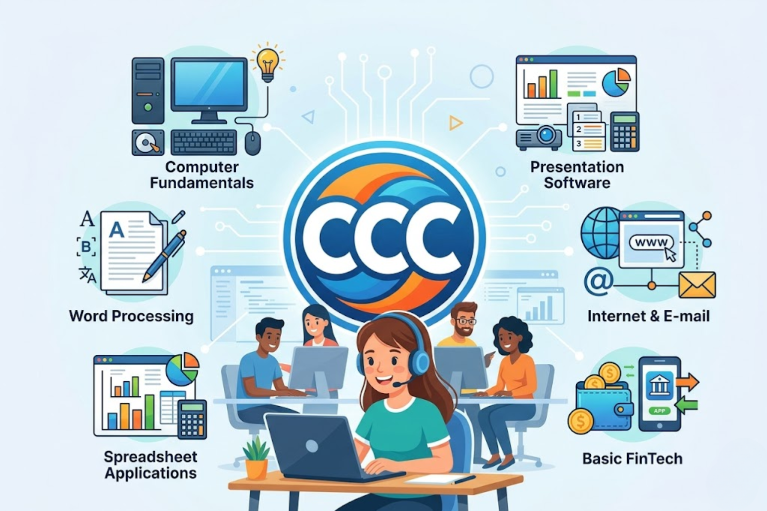 CCC (Course on Computer Concepts) is a basic level program designed to provide fundamental knowledge of computers and digital literacy.